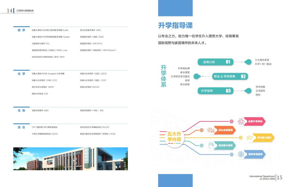 Our curriculum has been modified to meet the unique needs of Chinese students; our campus is rich in community culture and extracurricular activities, and our excellent foreign teaching staff and the school management team attract parents and students from all over China. In recent years, the Middle School Attached to JXNU International Program has become the first choice for Junior School graduates.