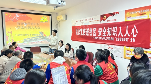 进一步筑牢老年人防诈骗安全屏障,帮助老年人提升防骗拒诈意识和能力,11月17日下午,江西师大pg电子 团委汪俊杰老师带着紫云志愿者协会十余名学生志愿者来到新魏路社区新时代文明实践站,与社区工作者、社区爷爷奶奶一起,开展“校家社零距离”共建新时代文明实践站社会实践课堂活动。活动围绕“防诈宣传进社区 安全知识入人心”主题开展,结合常见的养老诈骗手段,向老年人宣传常见的养老诈骗及防范措施。